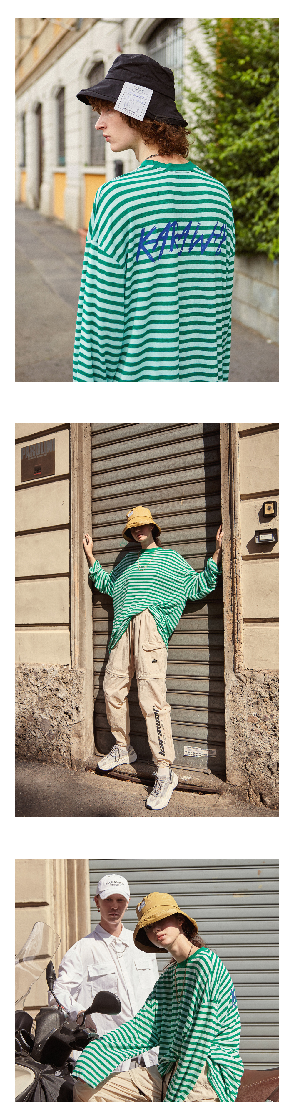 KARAWAY : [TECH WEAR] 첫 시즌, OVER DROP STRIPE LONG T 입니다.